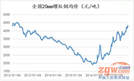 圖1:2012-2017年全國(guó)20mm螺紋鋼均價(jià)情況